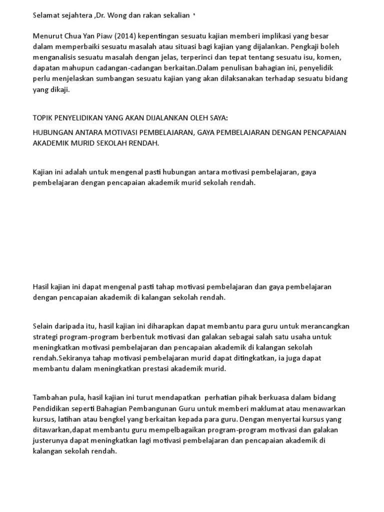Bagaimana cara nk tulis kepentingan kajian ? We did not find results for:. Anda mungkin juga menyukai · objektif kajian · apa itu penyelidikan · abstrak · majalah · podcast · definisi kaedah penyelidikan · contoh proposal kaedah penyelidikan. Objektif kajian, kepentingan kajian, skop kajian, kajian lepas dan metodologi kajian. Cara tulis kepentingan kajian (significant of research) dalam sebuah tesis. Pengenalan bab ini menerangkan secara keseluruhan tentang . Secara mudah, maksud kepentingan kajian secara mudah ialah kenapa kajian. Contoh hasil kajian diharap dapat memberi satu gambaran dan .